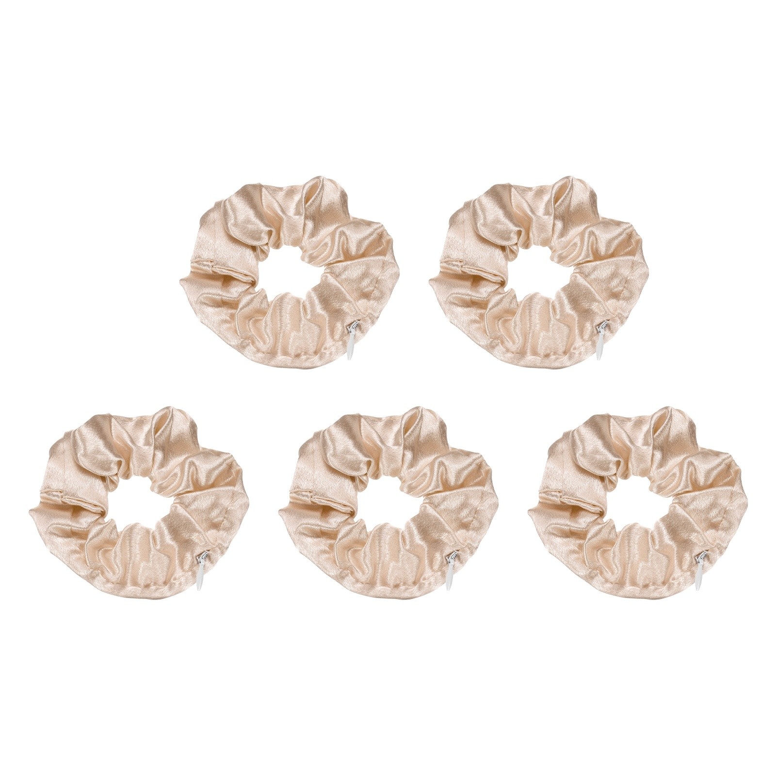 5pcs Silk Satin Scrunchies with Zipper Pocket Elastic Hair Bands Champagne