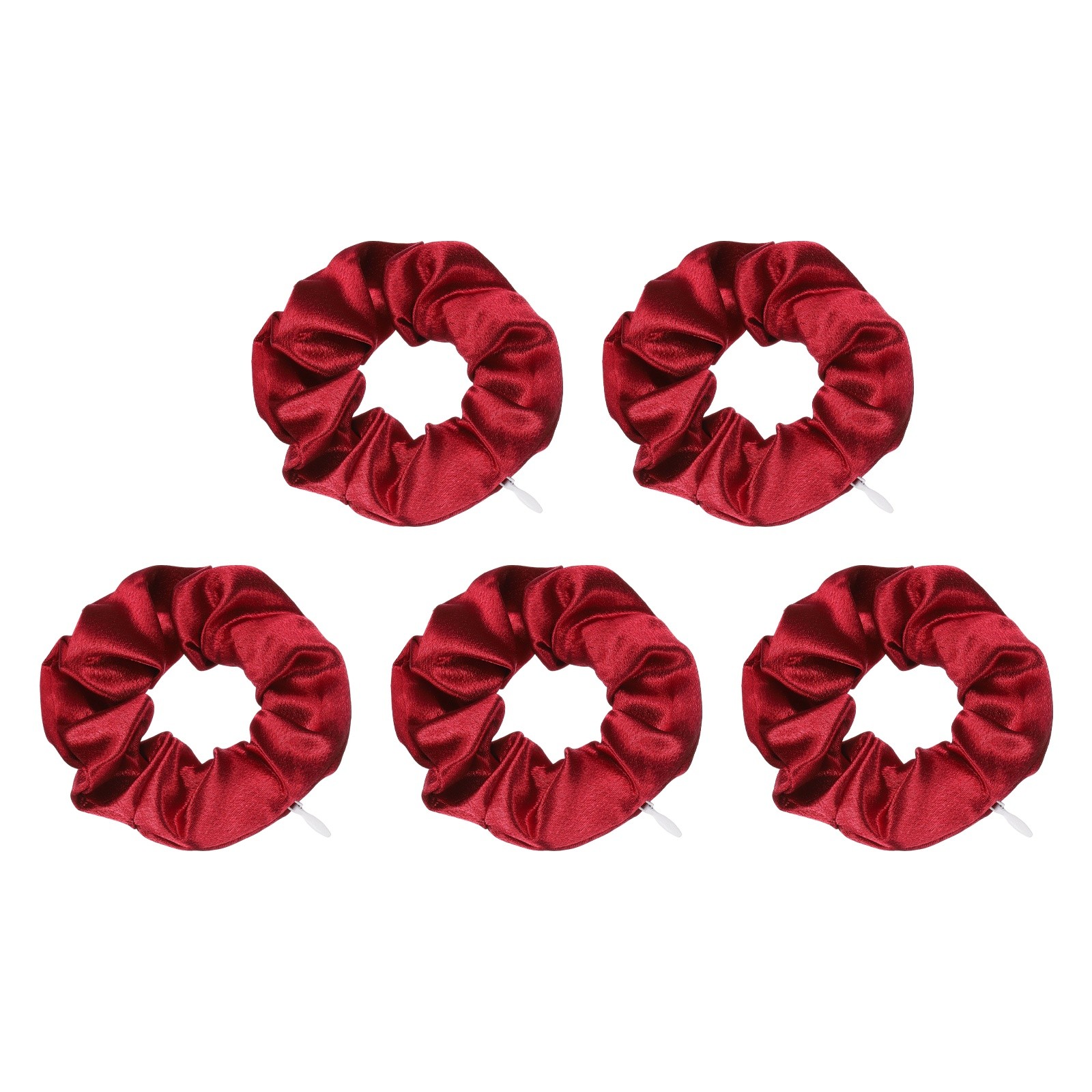 5pcs Silk Satin Scrunchies with Zipper Pocket Elastic Hair Bands Red