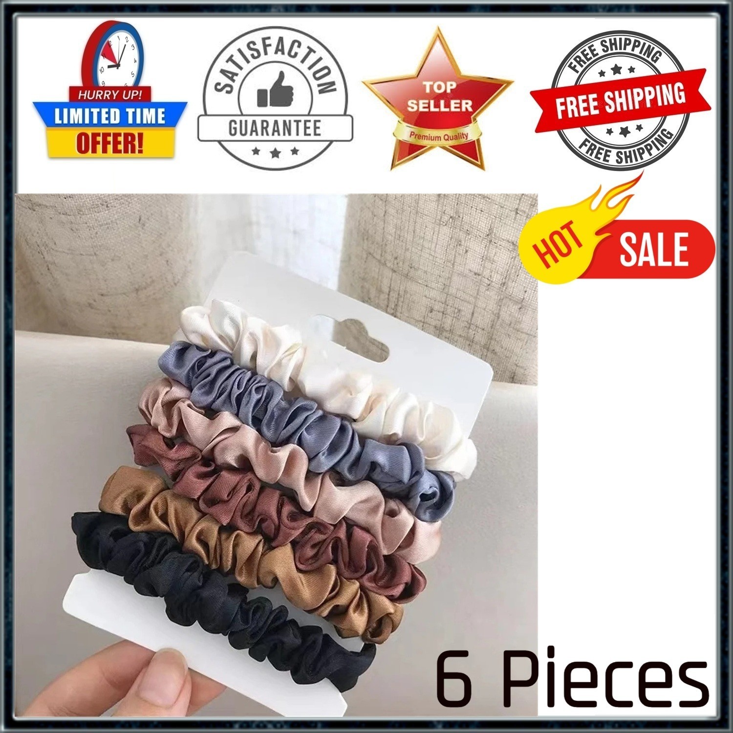 6Pcs Hair Scrunchies Satin Silk Elastic Hair Bands Scrunchy Bobbles Ropes Rings