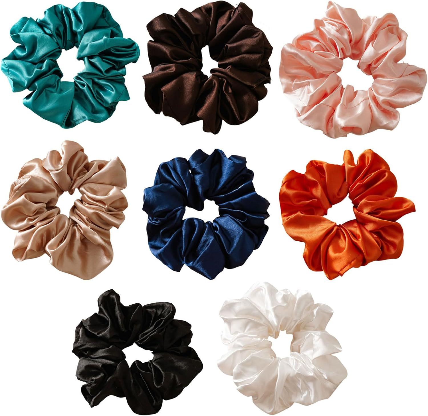 7Pcs Silk Hair Scrunchies for Women, Lengthening Satin Scrunchies for Hair, Soft