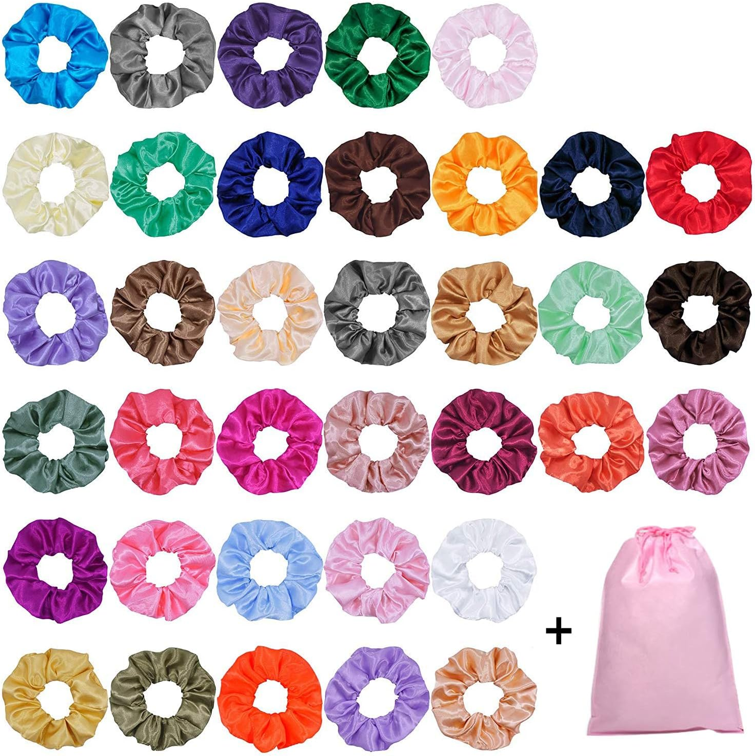 40 PCS Silk Satin Hair Scrunchies, Colorful Hair Scrunchy Set Strong Elastic Bob