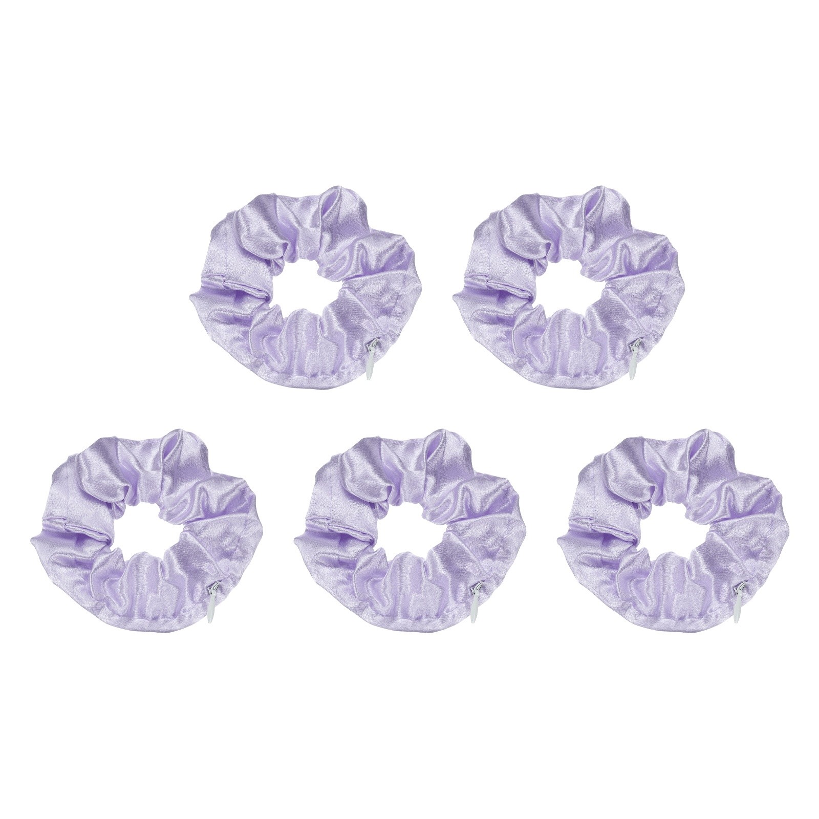 5pcs Silk Satin Scrunchies with Zipper Pocket Elastic Hair Bands Light Purple