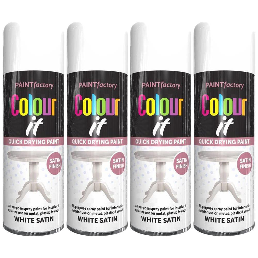4X White Satin Spray Paint Aerosol Auto Car Lacquer Wood Metal 250ml