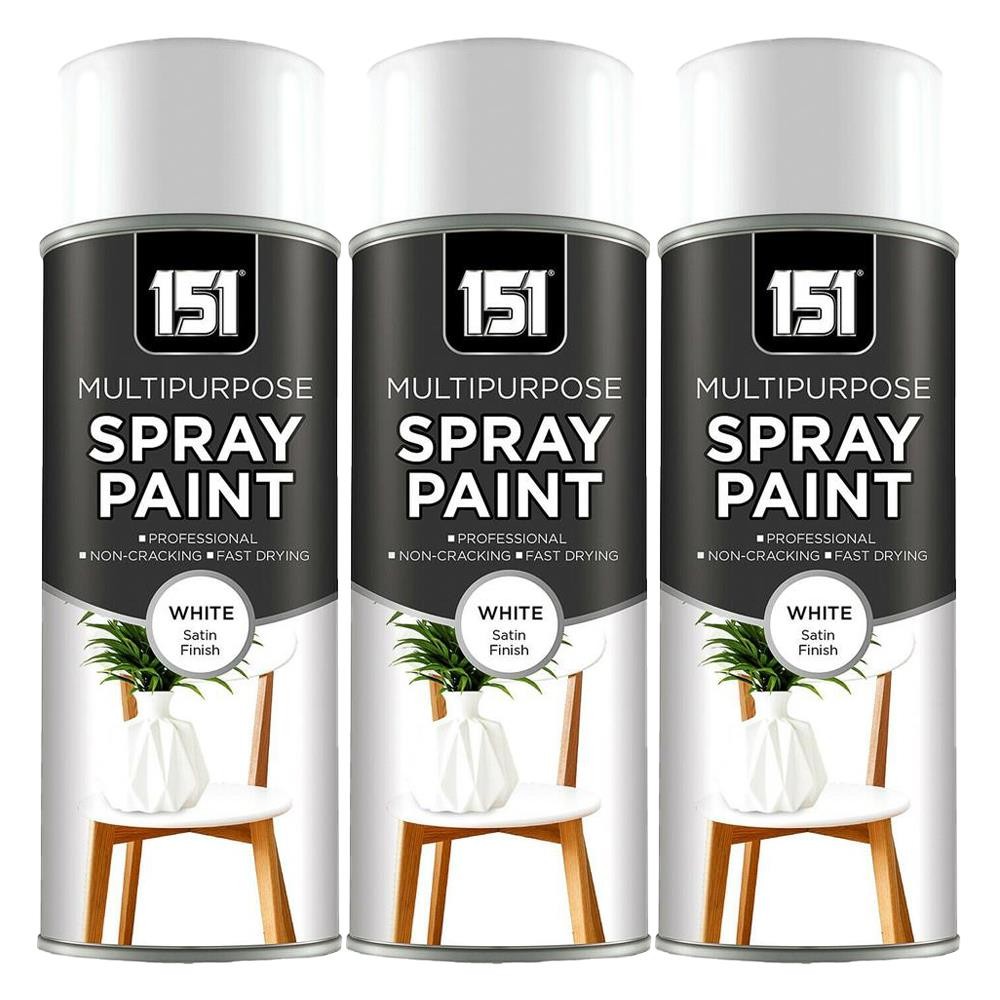 3x 151 White Satin Spray Paint Aerosol Auto Car Multi-Purpose 400ml