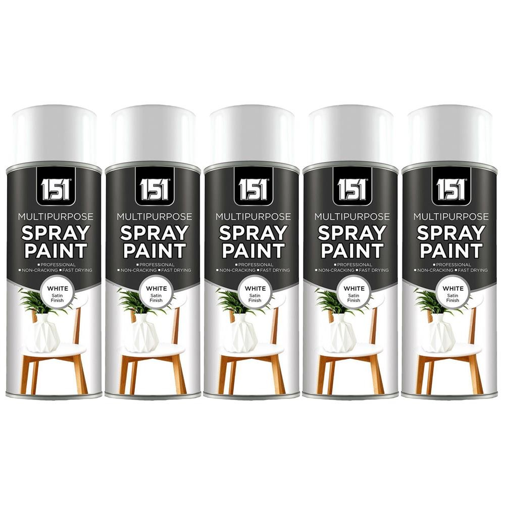 5x 151 White Satin Spray Paint Aerosol Auto Car Multi-Purpose 400ml