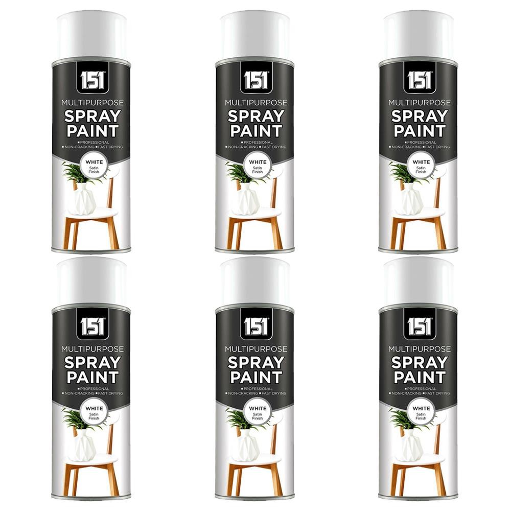 6x 151 White Satin Spray Paint Aerosol Auto Car Multi-Purpose 400ml
