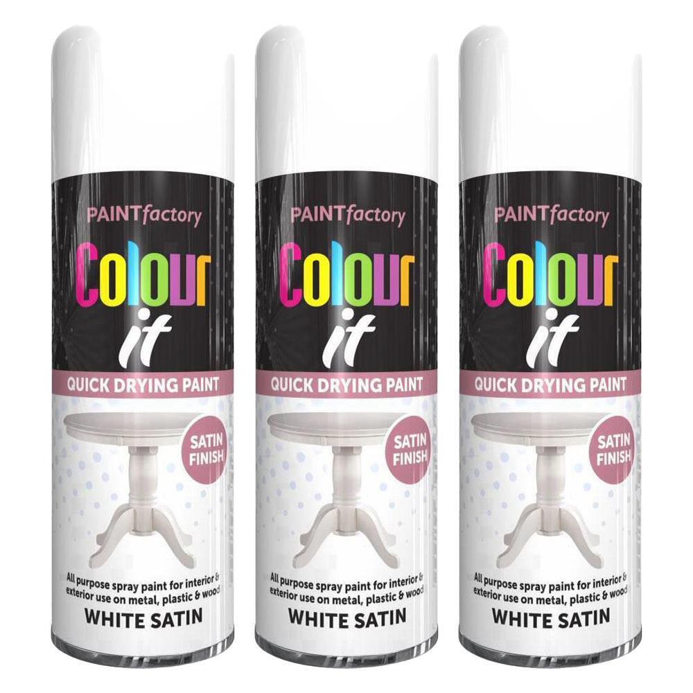 3X White Satin Spray Paint Aerosol Auto Car Lacquer Wood Metal 250ml