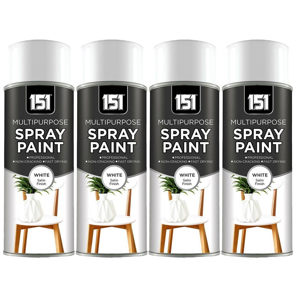 4x 151 White Satin Spray Paint Aerosol Auto Car Multi-Purpose 400ml