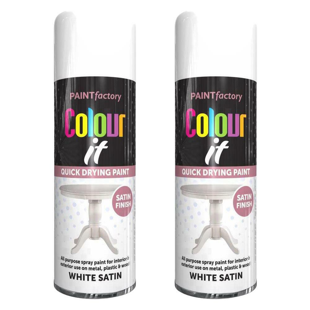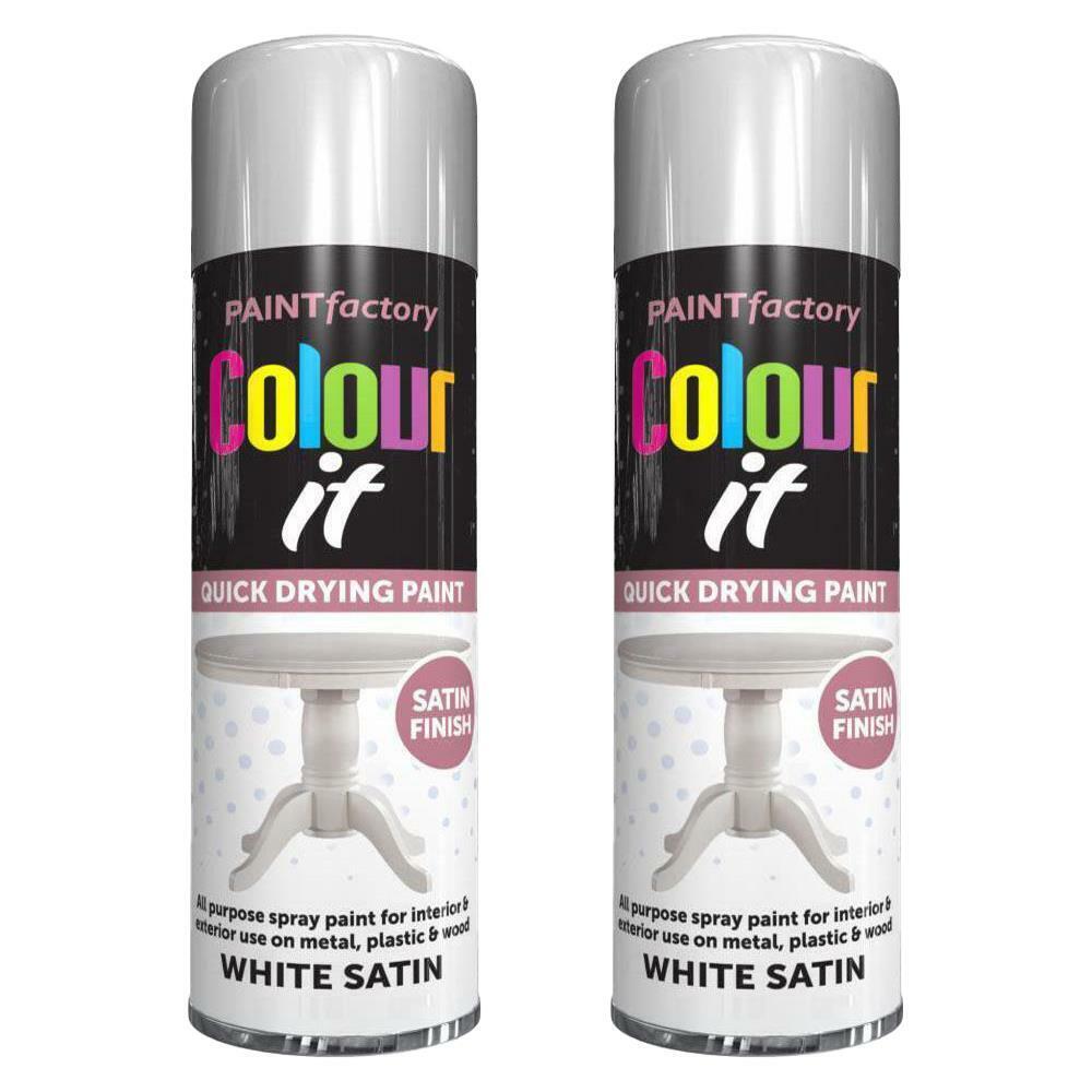 2X White Satin Spray Paint Aerosol Auto Car Lacquer Wood Metal 400ml
