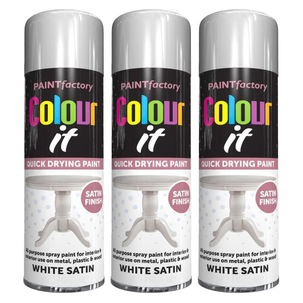 3X White Satin Spray Paint Aerosol Auto Car Lacquer Wood Metal 400ml