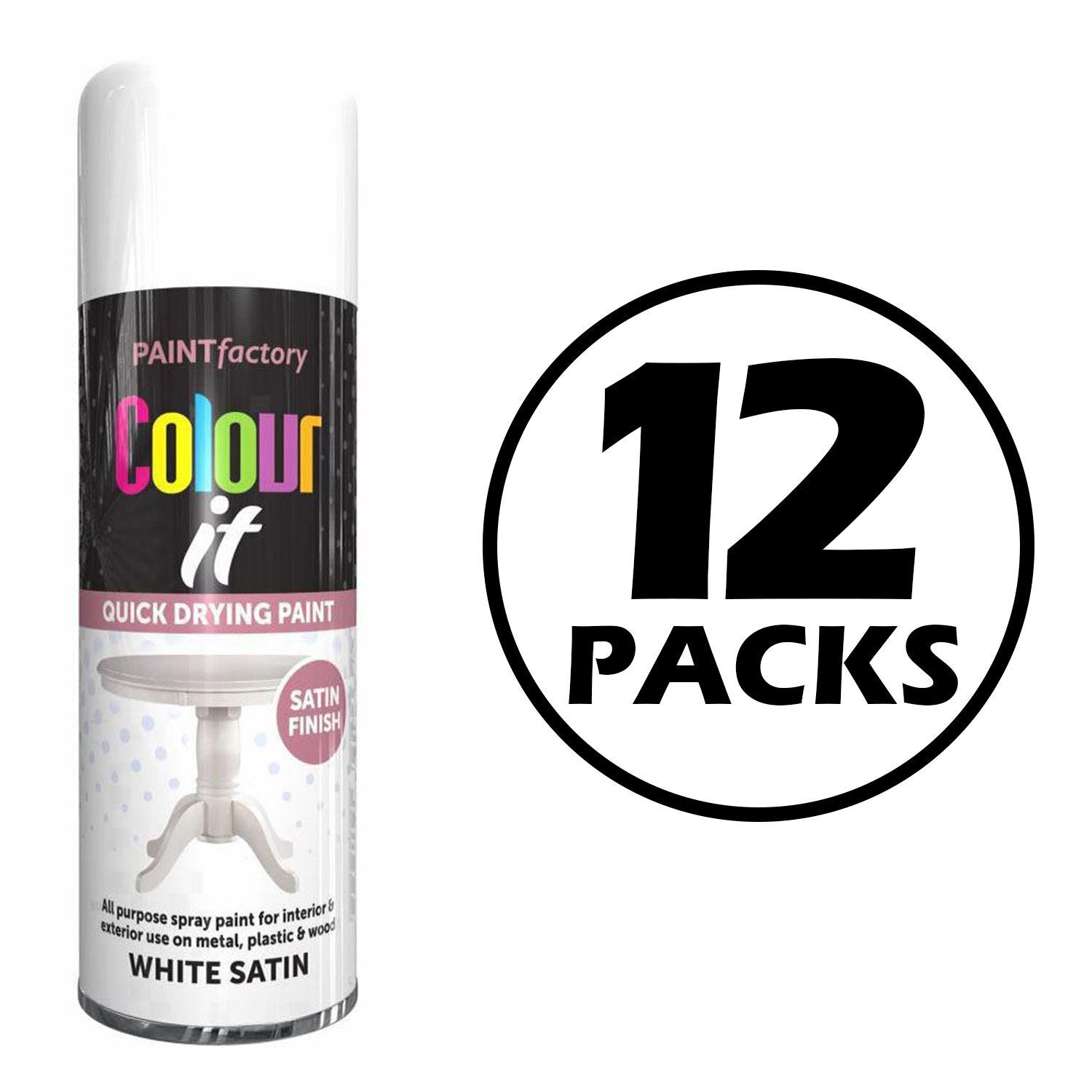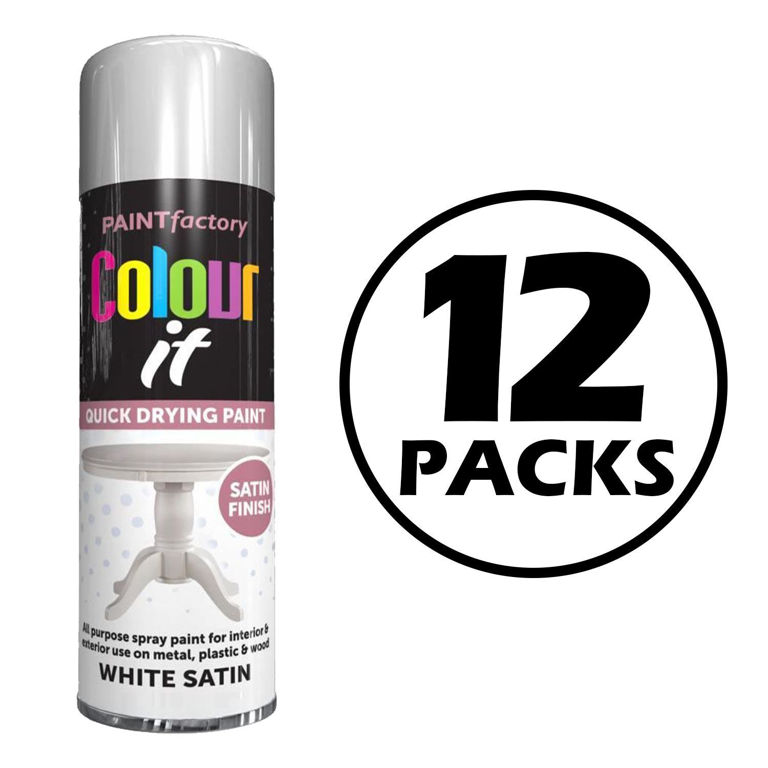 12X White Satin Spray Paint Aerosol Auto Car Lacquer Wood Metal 250ml