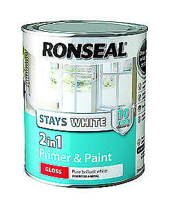 Ronseal Rslsw21Sp25L Stay 2-In-1 Satin Paint, White, 2.5 Litre