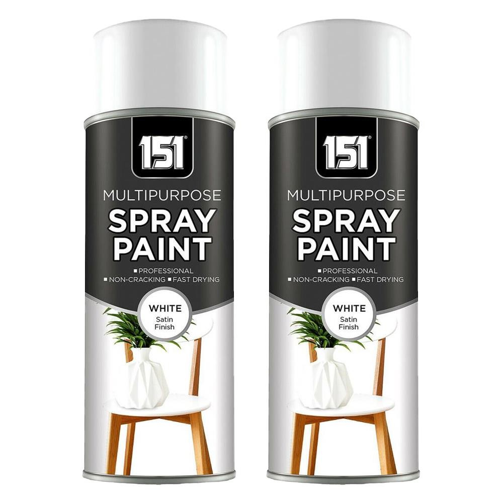 2x 151 White Satin Spray Paint Aerosol Auto Car Multi-Purpose 400ml