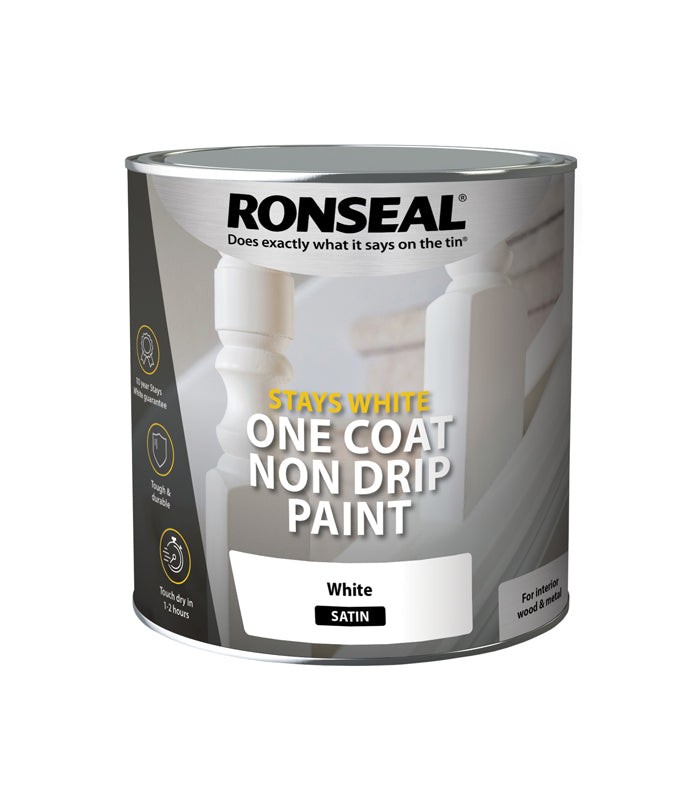 Ronseal One Coat Stays Satin Paint, White, 2.5 Litre
