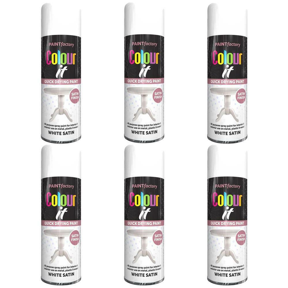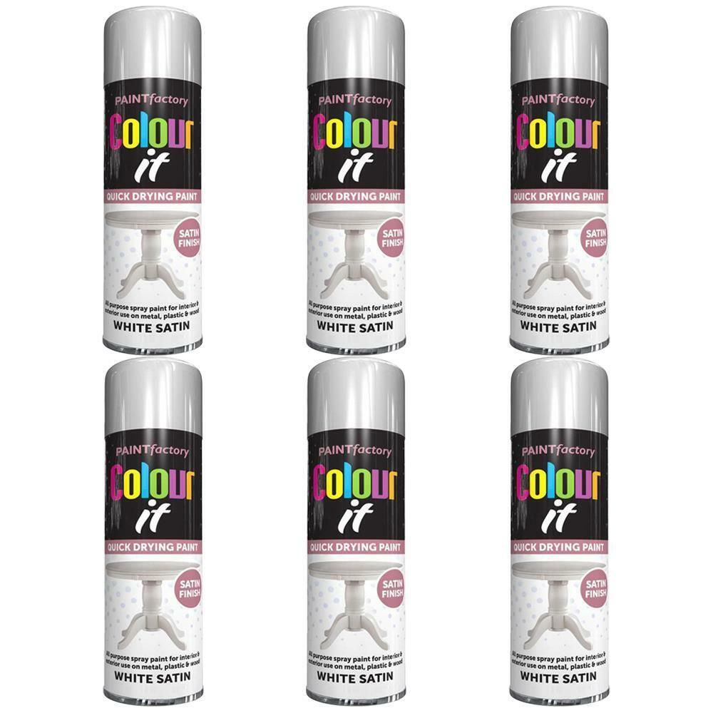 6X White Satin Spray Paint Aerosol Auto Car Lacquer Wood Metal 250ml