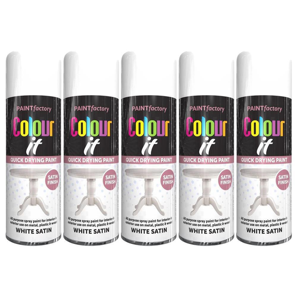 5X White Satin Spray Paint Aerosol Auto Car Lacquer Wood Metal 250ml