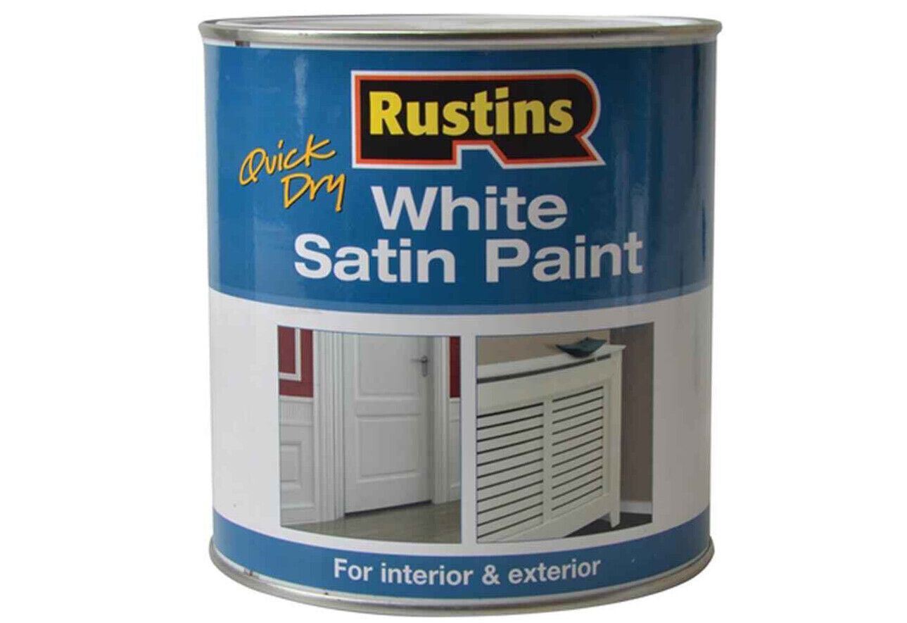Rustins White Satin Paint 500ml Quick Dry Hard Wearing Interior and Exterior Use