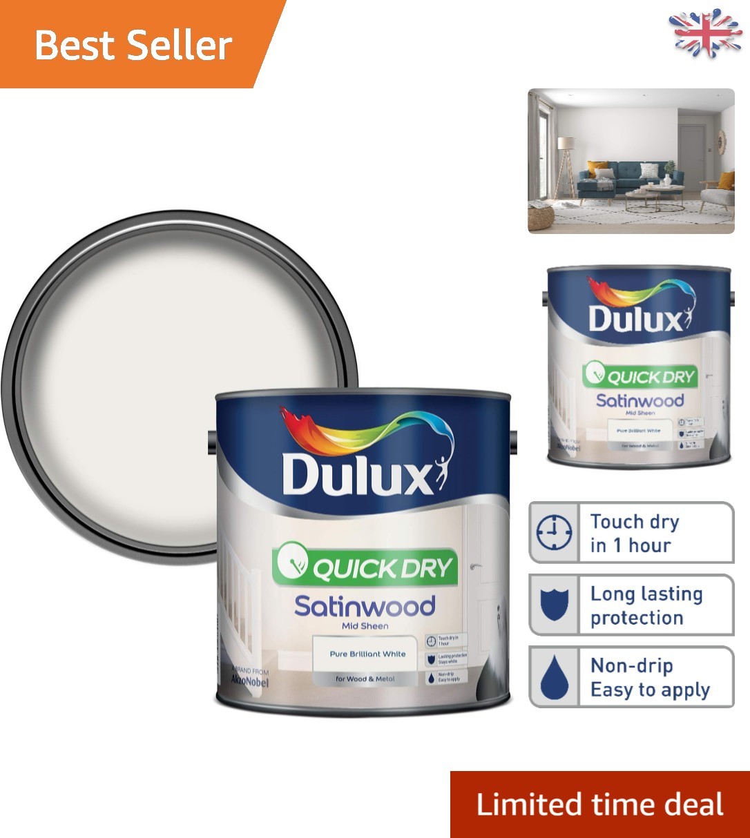 Dulux Quick Dry Satinwood Paint For Wood And Metal, Pure Brilliant White, 2.5 L