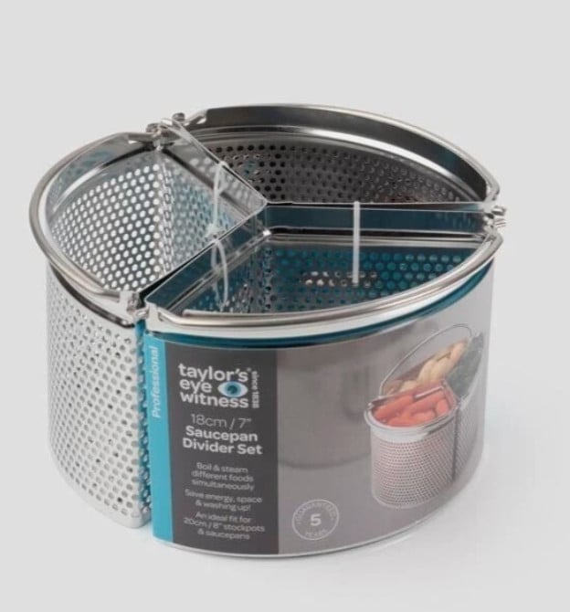 Taylors-Eye-Witness Saucepan Triple Divider And Separator Set - Saves Energy and Space When Cooking. Three Part Professional 18cm Stainless Steel Strainer. Vegetables,...