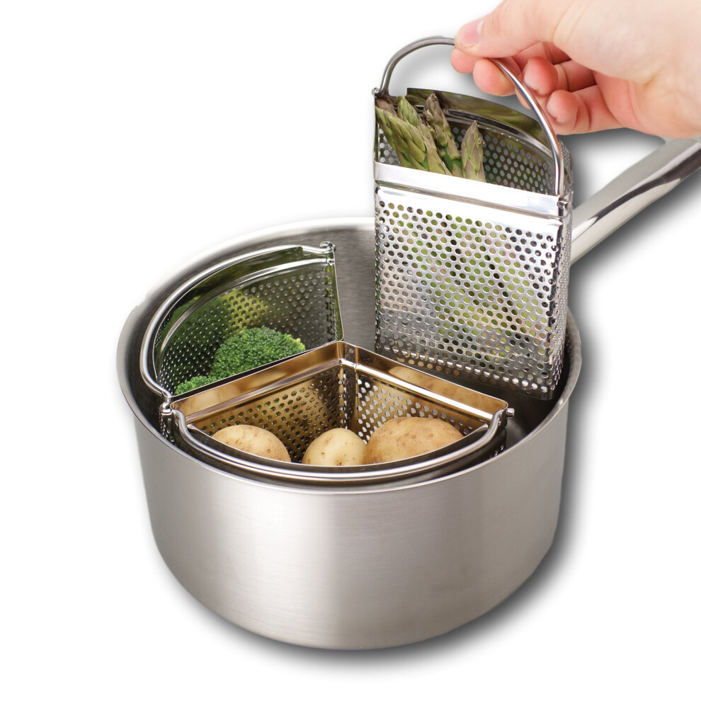 Saucepan Triple Divider Separator Set Multipurpose 18cm Stainless Steel Strainer