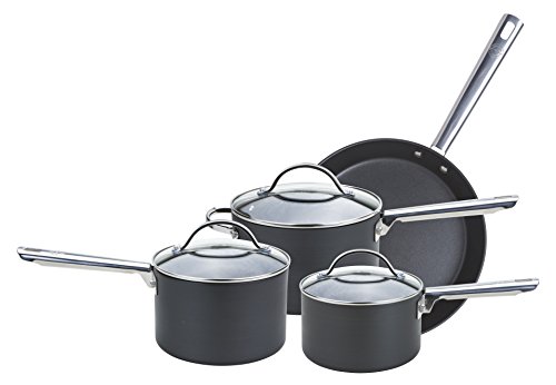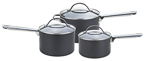 Anolon Professional Saucepans -16, 18 and 20cm-Premium Non Stick Sauce Pans with Glass lids Anodised cookware - Oven and Dishwasher Safe, hard-anodized_aluminum, Black, Set of 3