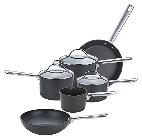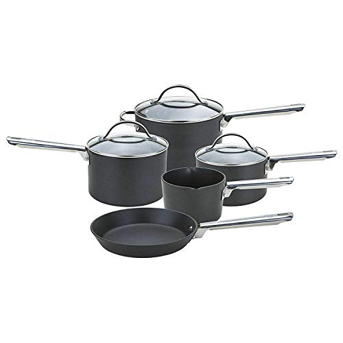 Anolon Professional Non Stick Pots and Pans Set of 5 - Cookware Set with Milkpan, Saucepans with Toughened Glass Lids & Frying Pan, Oven & Dishwasher Safe Cookware, Black