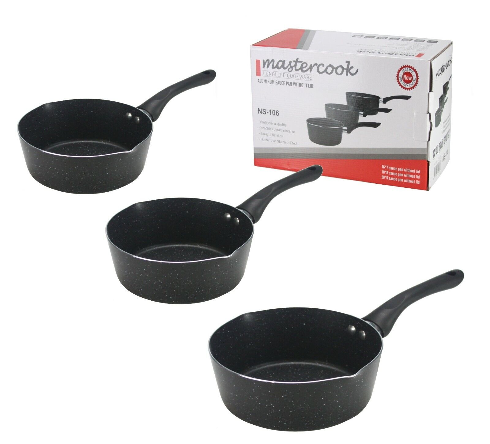 New 3PC Non Stick Milk Pan Saucepans Set Cookware Boiling Cooking Pot 16/18/20cm