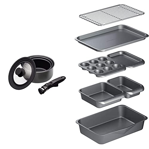 Bundle of MasterClass Smart Space Bakeware Set 7-Piece Non Stick and Stackable + MasterClass Smart Space Saucepans, Non-Stick Saucepans for all Hobs, Induction Safe, Aluminium, 5-Piece Set, Grey