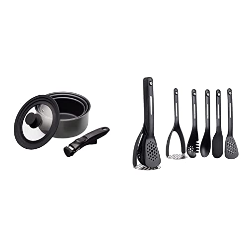 MasterClass Smart Space Saucepans, Non-Stick Saucepans for All Hobs, 5-Piece Set, Grey & Magnetic Kitchen Utensil Set, Black, Pack of 5,9 x 9 x 30 cm, Pack of 5