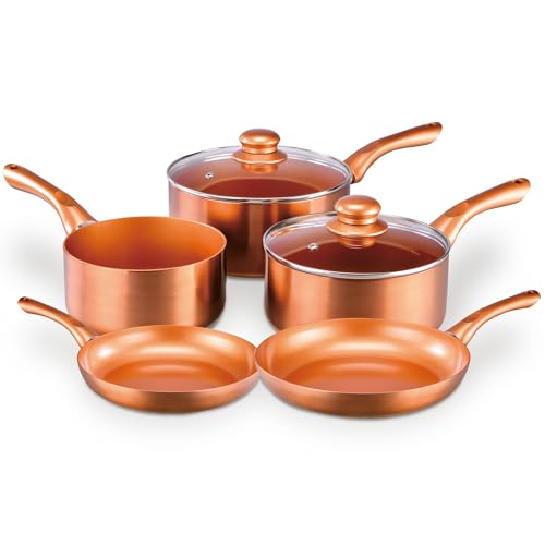 Cermalon 5-Piece Copper Collection Cookware Set-Includes 2X Frying Pans and 3X Saucepans- Ceramic Non-Stick Coating with Metallic Copper Exterior-Compatible for All Types of Hobs-PTFE & PFOA Free