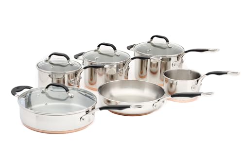 ProWare Copper Base Cookware Set of 6 (14cm Milk pan 16cm, 18cm, 20cm saucepans 26cm Saute and 24cm Frying pan)