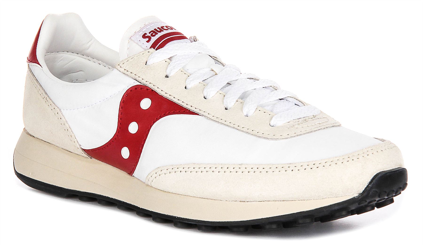 Saucony Jazz Original Suede Nylon Lace Up Womens Trainer In White Red UK 3 - 11