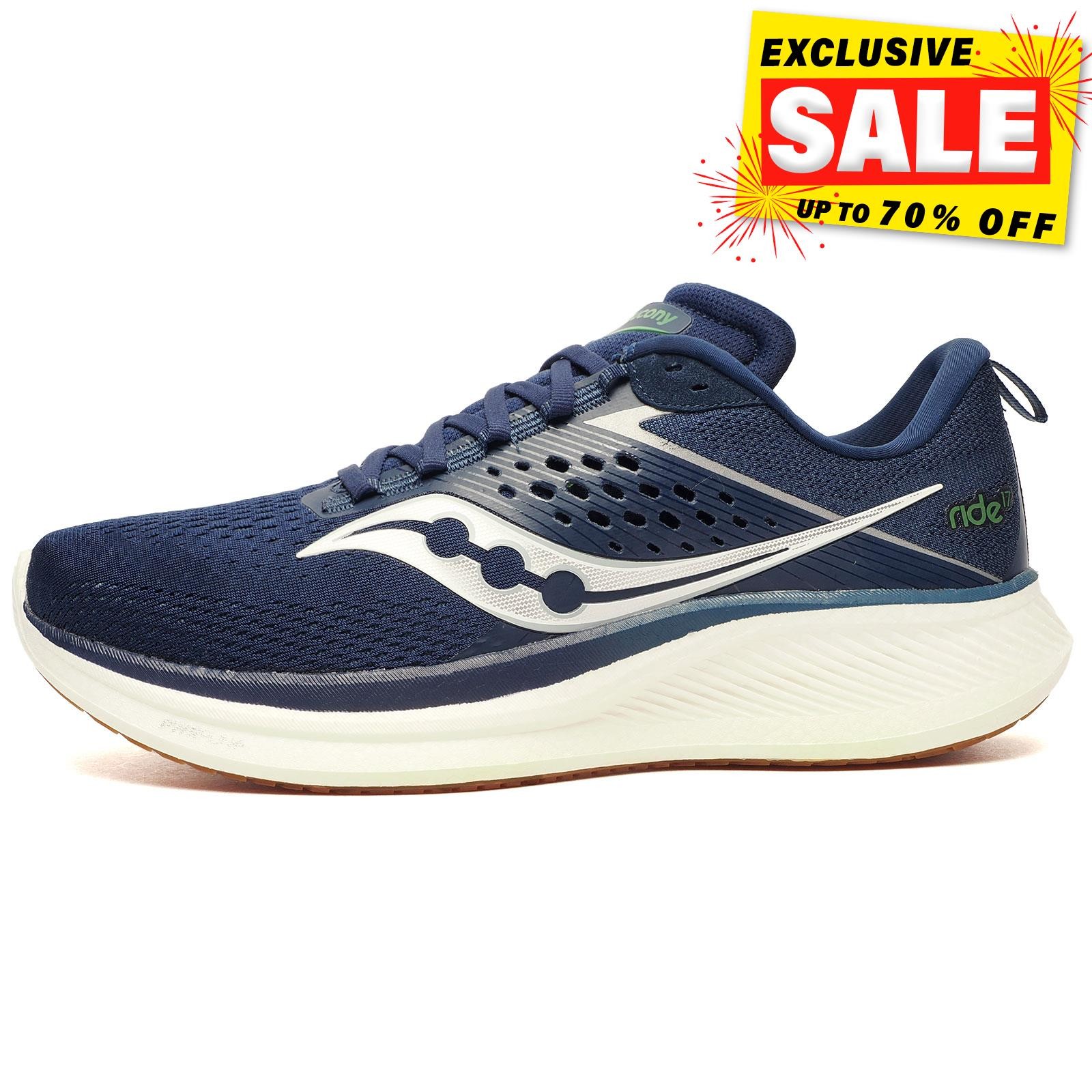 Saucony Ride 17 Mens Running Shoes Fitness Gym Workout Performance Trainers Navy