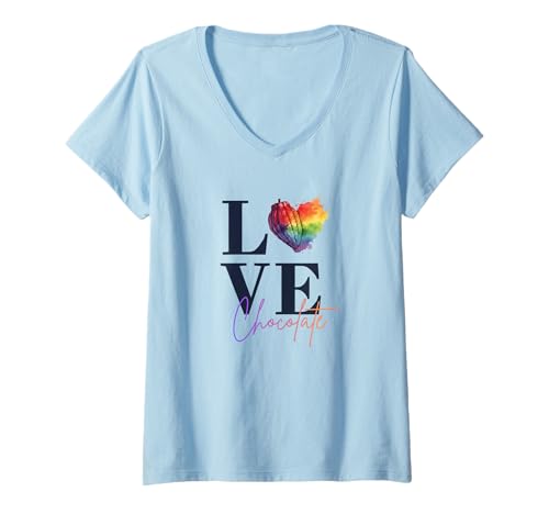 Women's Love Chocolate Cocoa Pod Heart Foodies V-Neck T-Shirt