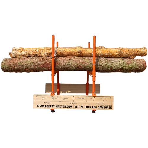 Forest Master BLS-2H Bulk Log Sawhorse - Perfect for Precise Multi-Log Cutting - 150kg Log Capacity - Compact, Lightweight and Foldable - Dual Auto-Locking Chains for Superior Log Stability