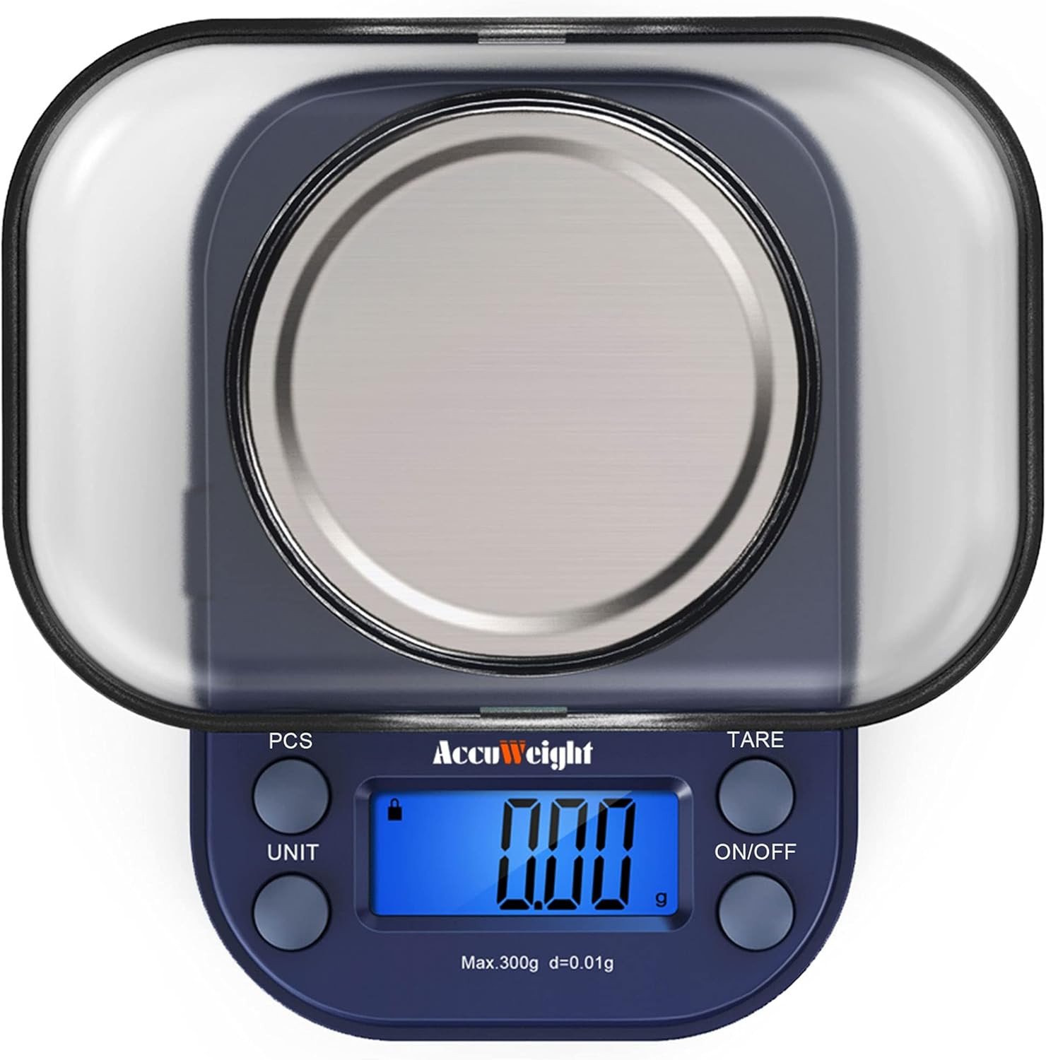 ACCUWEIGHT Blue 300G LCD Mini Precision Scale, Stainless Steel, 0.01G, Multifunc