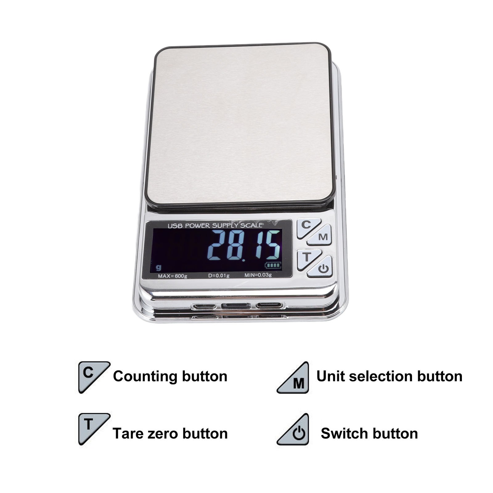 (1000g~0.01g) Jewelry Scale Carat Scale 0.01g USB Plug-in Or Rechargeable Pocket