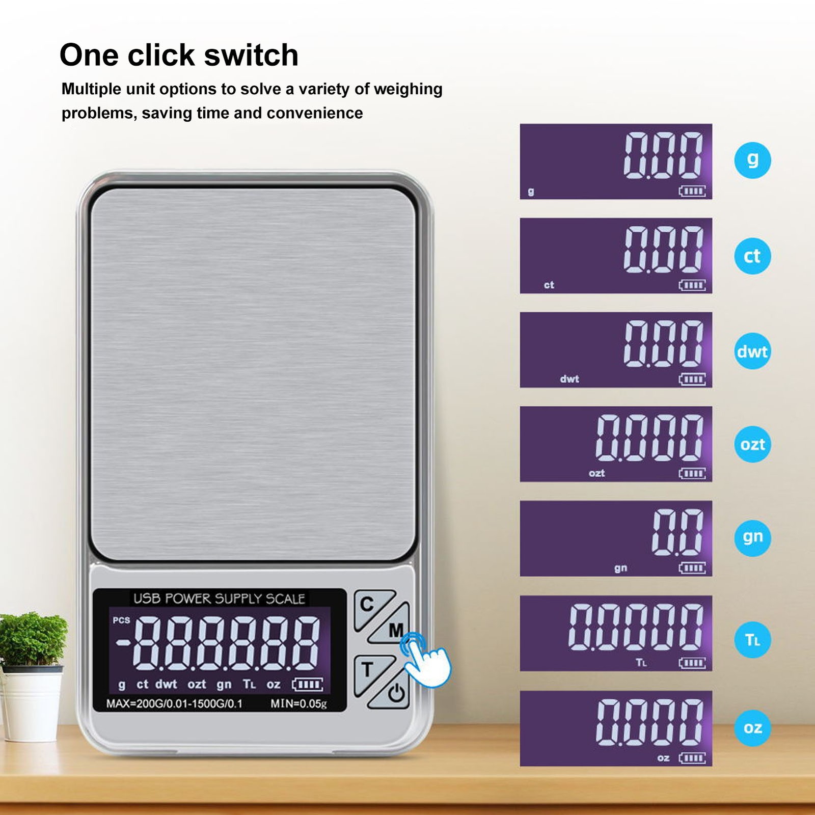 Home Digital Kitchen Scale 200G/0.01G 1500G/0.1 High Accuracy Usb De