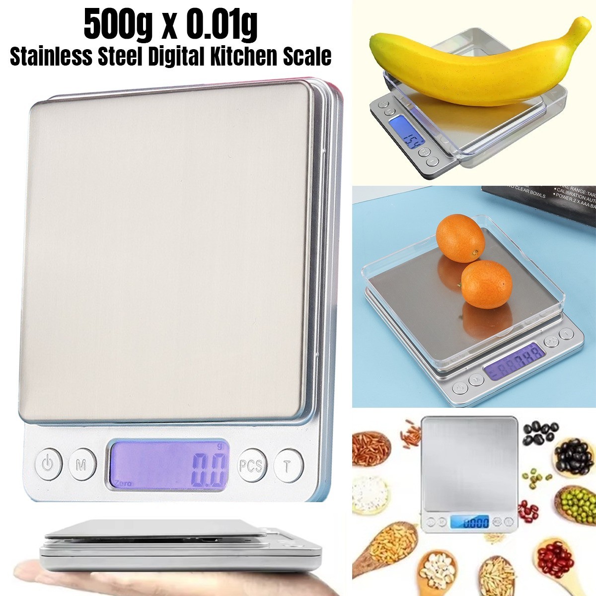 Stainless Steel Digital Kitchen Scale 500g x 0.01g LCD Display Food & Jewelry