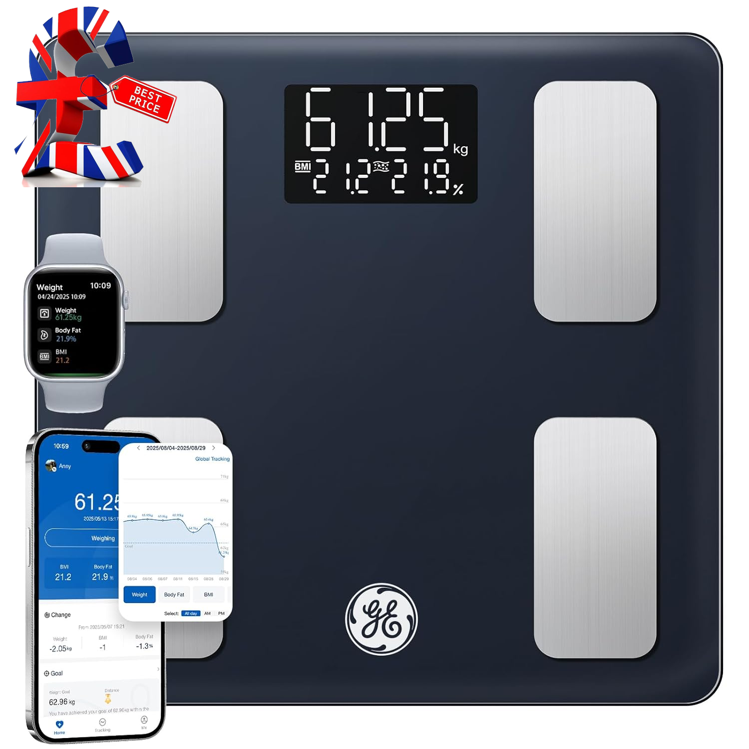 GE Scale for Body Weight and Fat Digital 8 Electrode Smart Bathroom Scale 27