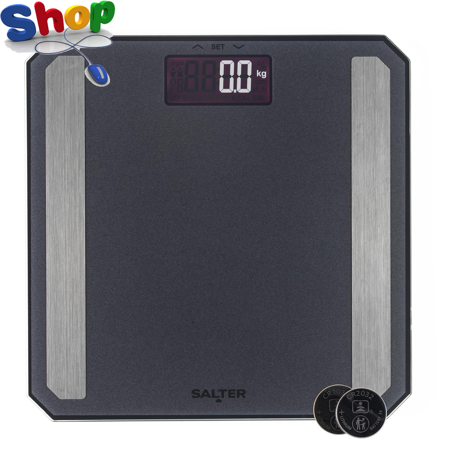 Salter Analyser Bathroom Scale Weighing BMI/Body Fat/Water Ultra Slim Silver