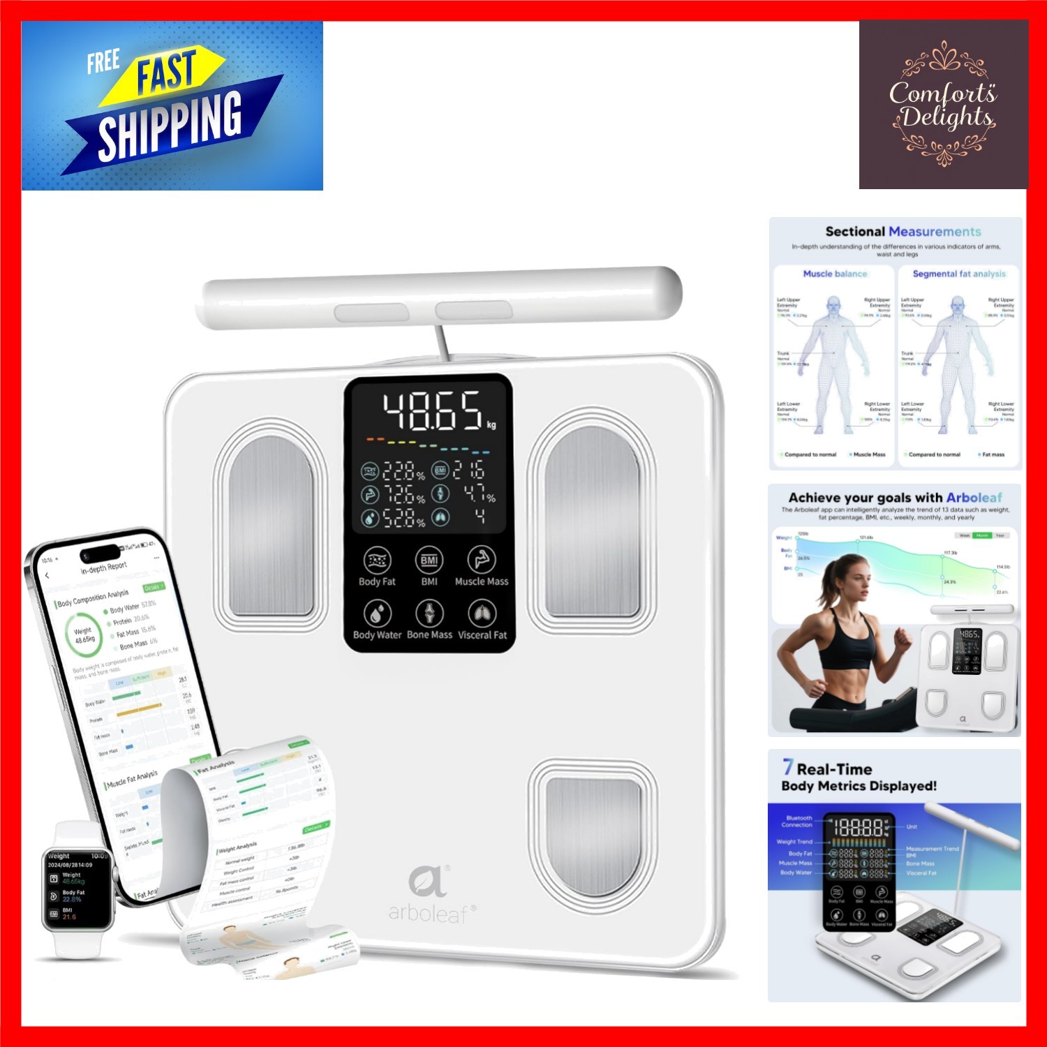 arboleaf Smart Scale for Body Weight and Fat, Large Display Body Composition Scale with Handle & 8 Electrode, Bluetooth Digital Weight Scanner Scale with 50+ Metrics for BMI Muscle Mass,180kg/400lb