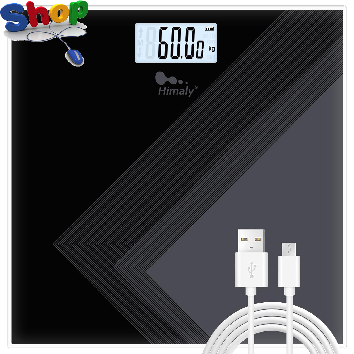 Digital Bathroom Scales USB Rechargeable, Weighing Scales for Body Weight with W