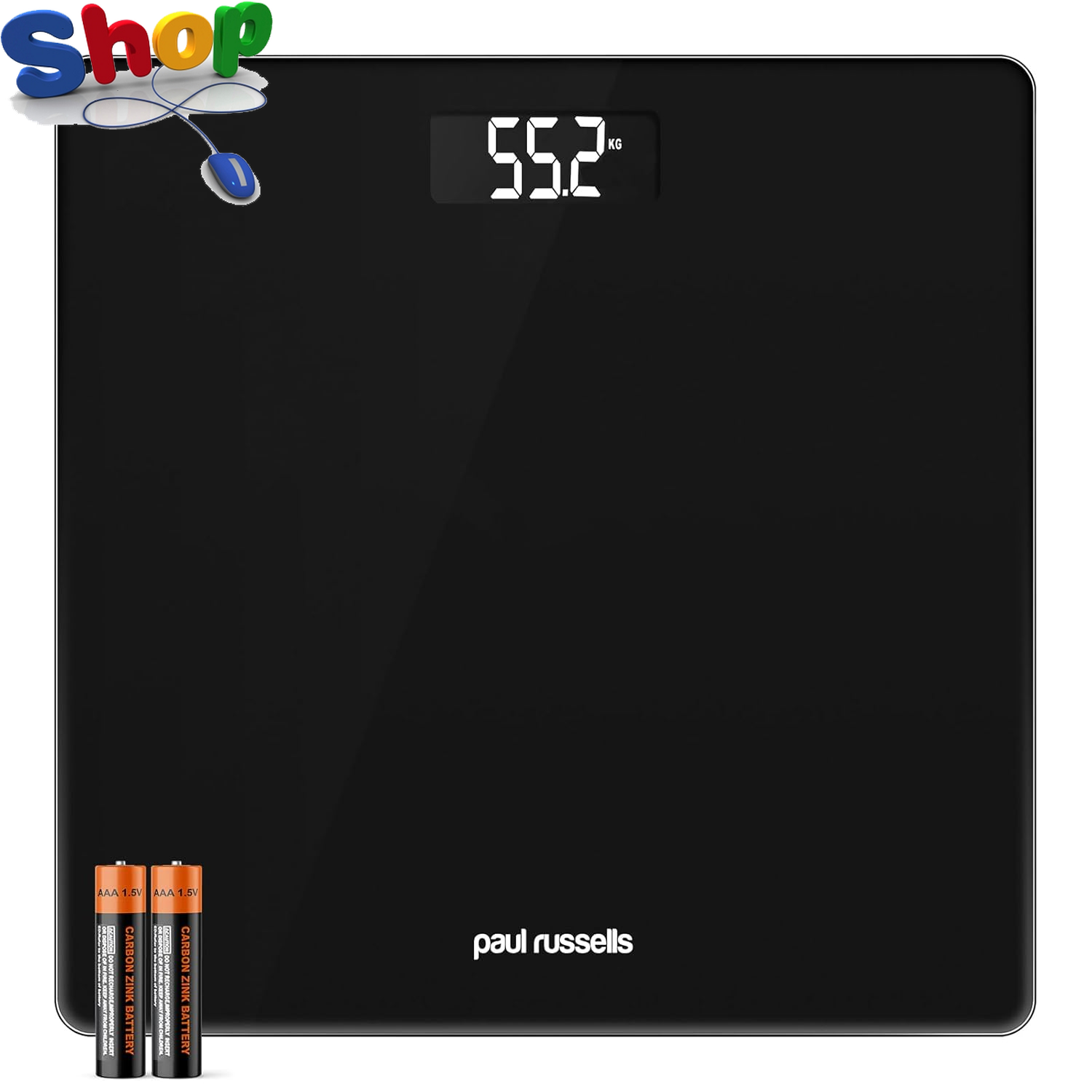 paul russells Digital Bathroom Scales for Body Weight, Glass Weighing Scale, High Precision Sensors Accurate Weight Machine, Batteries Included, 150kg/24st/330lb, Black