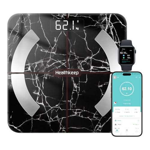 Healthkeep Scales for Body Weight with 13 Body Composition Metrics, Smart Digital Weight-Machine Bathroom Weighing Fat Scale Compatible with iOS Android, Max 400lb/180kg, Black Marble