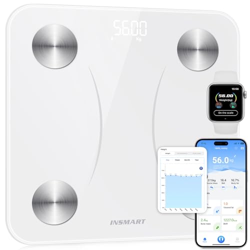 INSMART Bathroom Weighing Scales For Body Weight, Smart Digital Bluetooth Body Fat Scale Machine for Body Composition Analyzer with APP for Fitness Accurate Bmi Health Electronic (ST:LB/LB/KG)