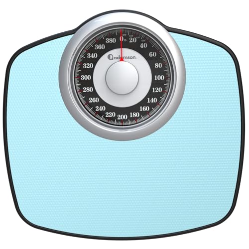 Adamson A25 Scales for Body Weight - Up to 400 LB - 5.3" Dial on 12.4" x 12" Platform - Anti-Skid Rubber Surface - High Precision Bathroom Scale Analog - Durable with 20-Year Assurance - Light Blue
