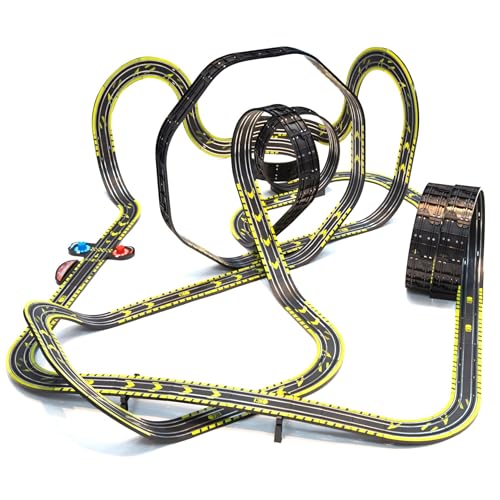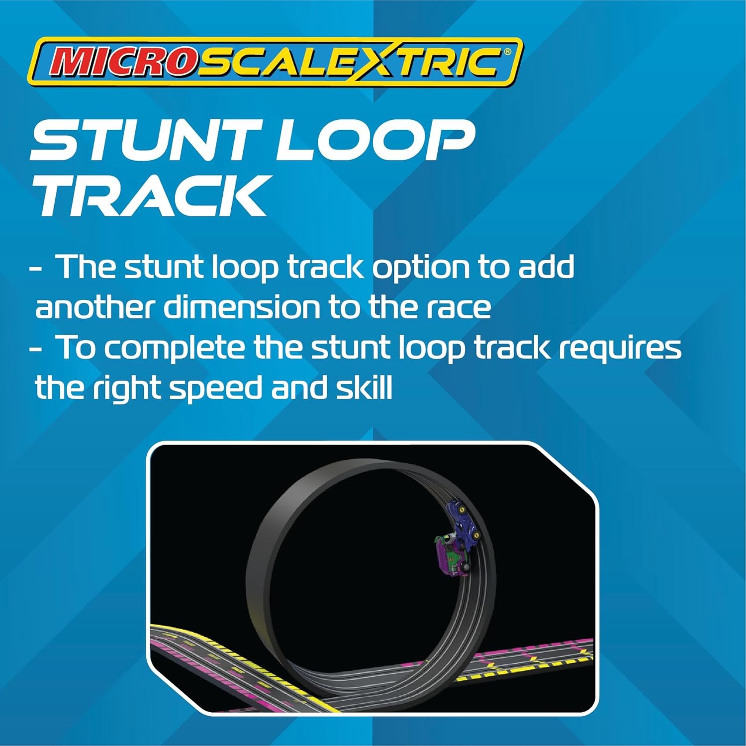 Micro Scalextric Mega Mania Race Set - Mains Powered Slot Car Track for Kids Age 4+ - 1x Law Enforcer, 6x Stunt Loop, 1x Ejector Lap Counter, 4x Track Extension Packs