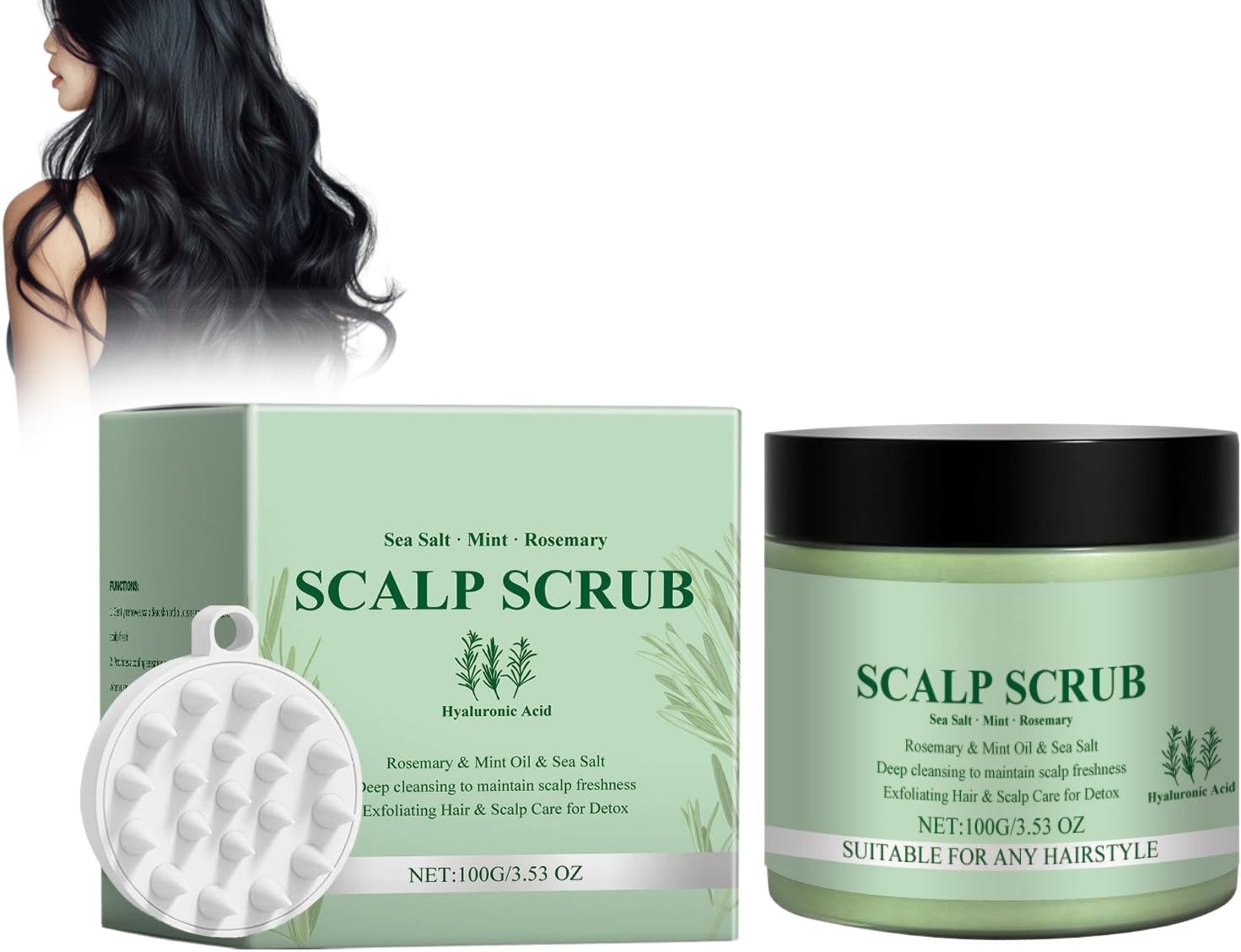 Rosemary Scalp Scrub, 100 g Scalp Scrub, Hair Care with Massage Brush, Scalp Sc