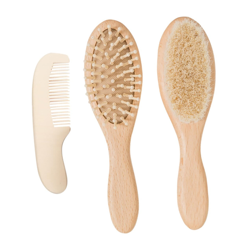 Bath Brush and Comb Set with Soft Wool Bristles, Long Handle for Gentle Back Scrub and Scalp Massage